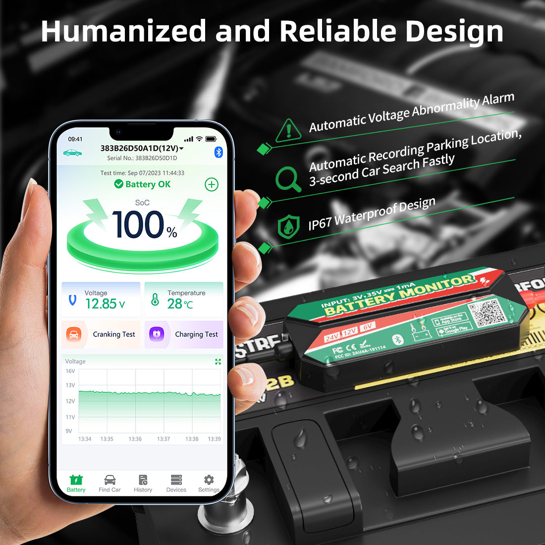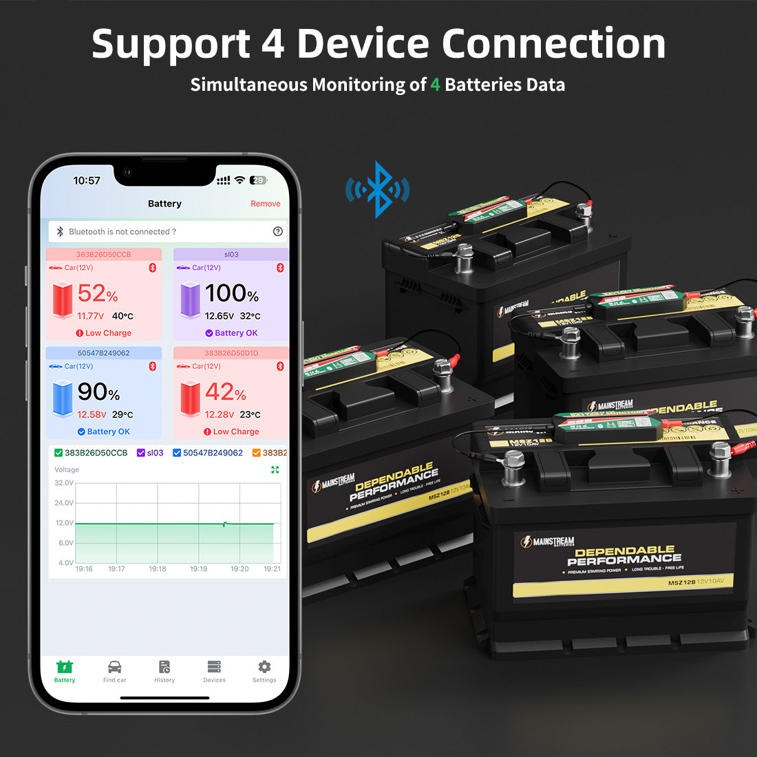 It provides real-time monitoring of battery power, temperature, and voltage, with customizable settings to define voltage values corresponding to battery percentage. leagend BM7 supports multi-device management, allowing up to four devices to be tracked on the same page.