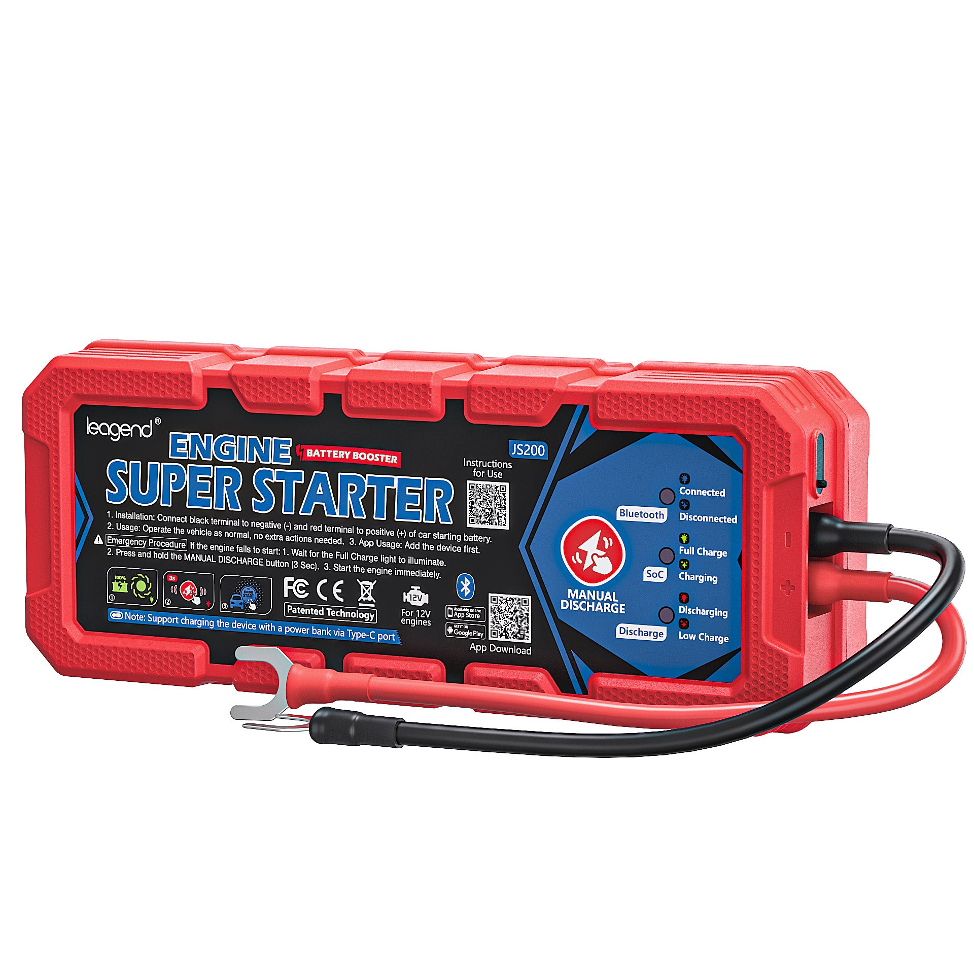When starting your car, the Booster’s supercapacitors deliver the high peak current first, so your lead-acid battery doesn’t need to release large bursts of power.