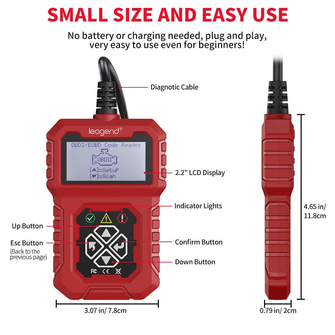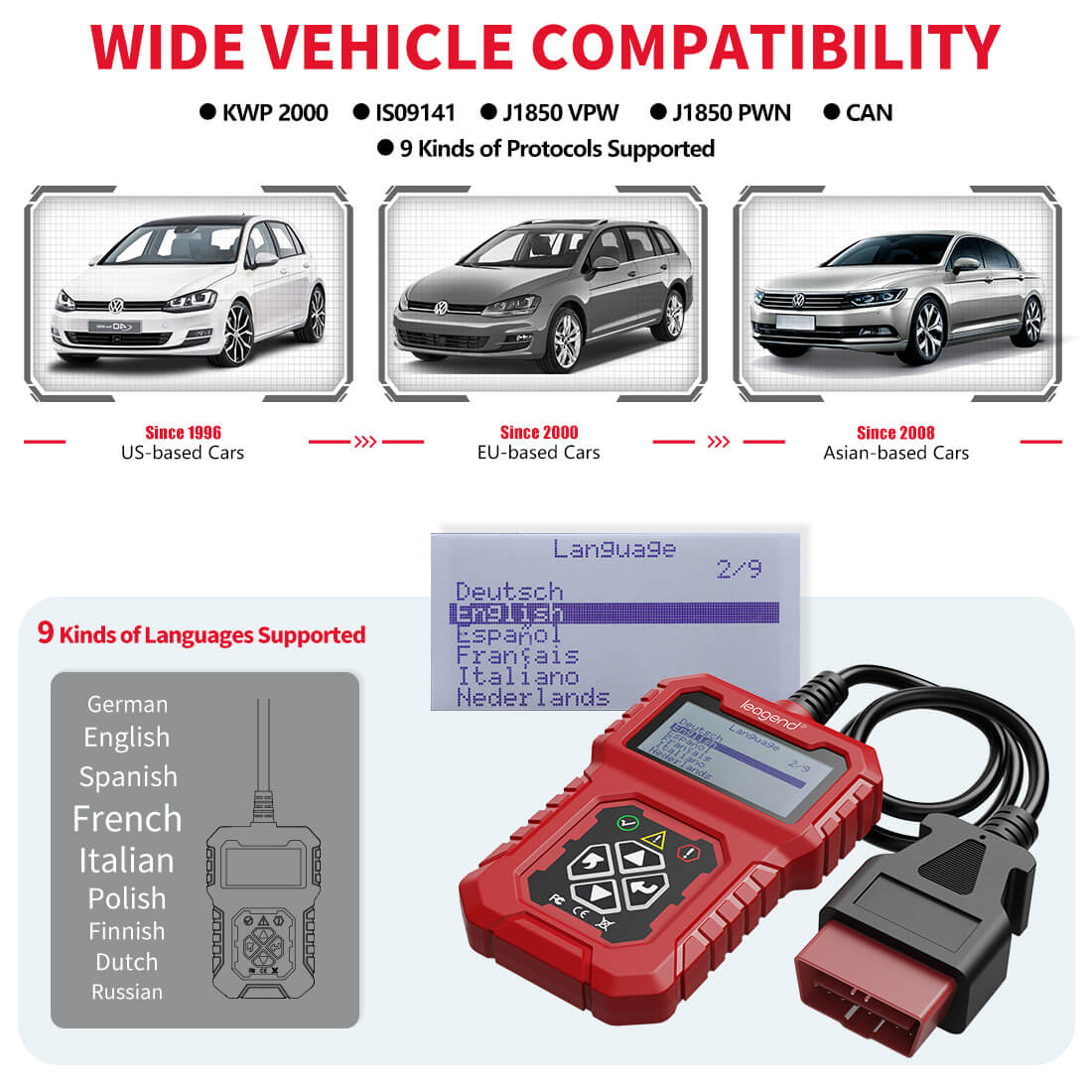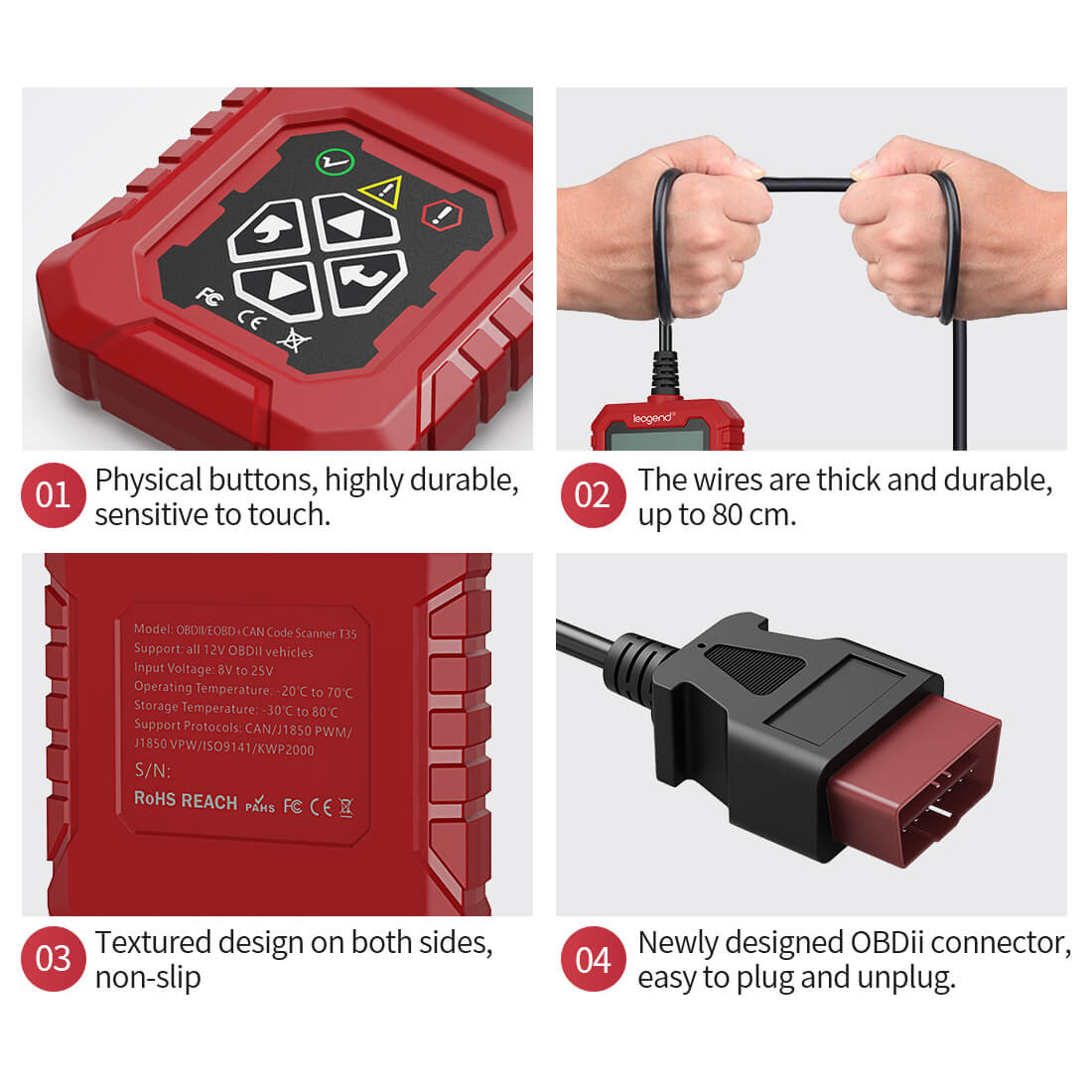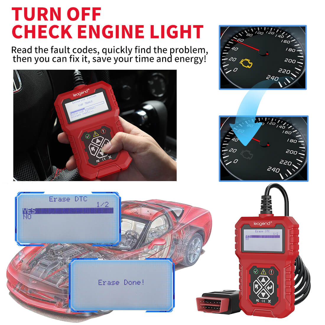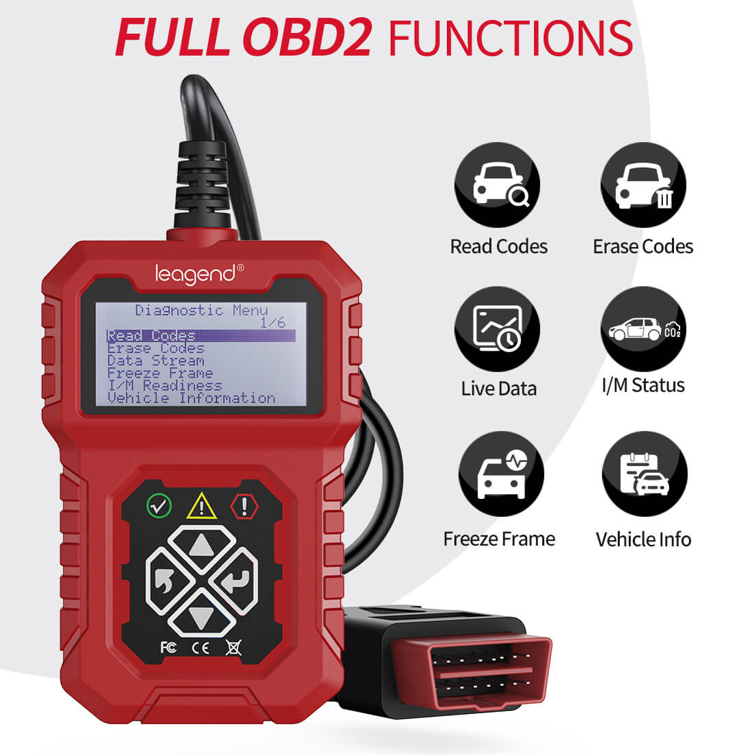 leagend T31 reads and clears engine trouble codes, offering definitions for DTC fault codes and it supports dynamic data flow display, showing 249 ECU operating parameters in real-time. Users can view freeze-frame data, I/M status, and turn off the check engine indicator (MIL). Additionally, leagend T31 reads vehicle information, including VIN, Calibration IDs, and CVNs, ensuring comprehensive vehicle diagnostics.