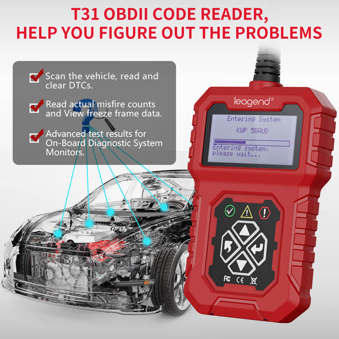 leagend T31 offers dual system inspection, allowing users to check both engine and transmission systems. It provides quick engine failure detection with LED indicators (green/yellow/red) to show the engine's status.